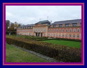 Zámek z let 1745-65 patří k nejkrásnějším ukázkám čistého francouzského rokoka u nás. Vystavěn pro Mansfeldy ( Colloredo - Mansfeldy ), za okupace venkovské sídlo říšských protektorů, po r. 1945 v držení Svazu čs. spisovatelů, po roce 1989 v restituci vrácen Jeronýmu Colloredo-Mansfeldovi. Má hodnotné interiéry a výzdobu od malíře J. P. Molitora, sochaře I. F. Platzera aj. Na zámek navazuje velký francouzský park z r. 1750 na stoupajících terasách s oranžerií a fontánou, který pokračuje jako anglický z r. 1800 a tzv. Nový z r. 1879.